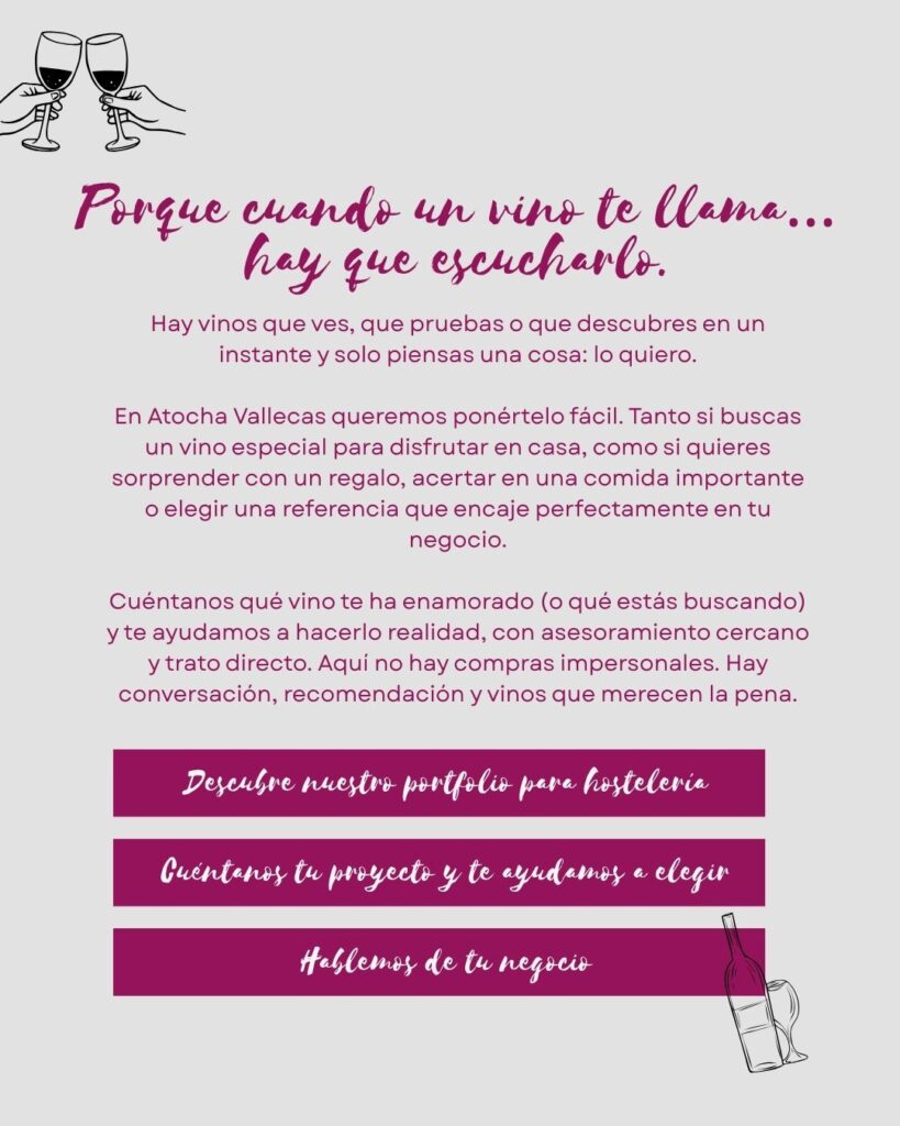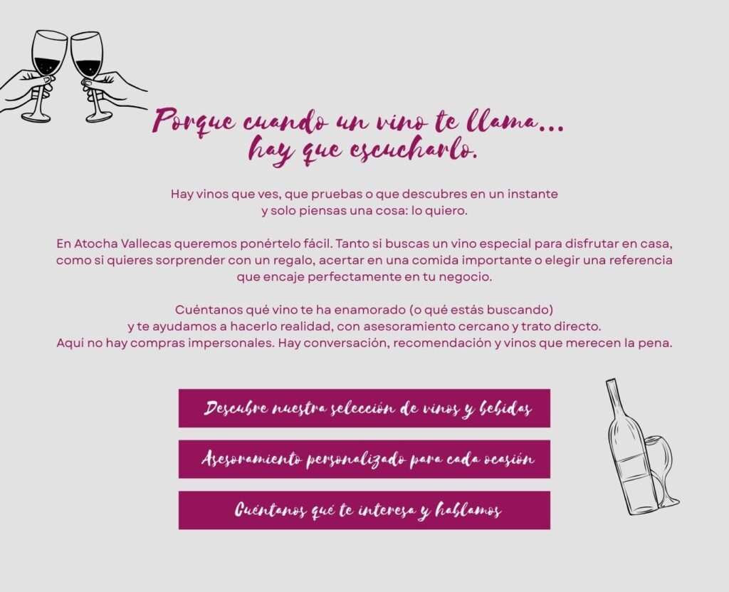 Lo quiero CUÉNTANOS QUÉ BUSCAS Cada persona y cada ocasión son distintas. Cuéntanos qué vino o bebida te ha llamado la atención y te ayudamos a elegir la opción que mejor encaja contigo o tu negocio. Nombre de contacto ¿Quién eres? Sumiller profesionalProfesional de la hosteleríaDueño de un negocioAmante del vinoParticularOtro Tu correo electrónico Asunto de interés ¿Quieres darnos más detalles? (opcional) Acepto la Política de Privacidad y recibir emails informativos y comerciales de la empresa.